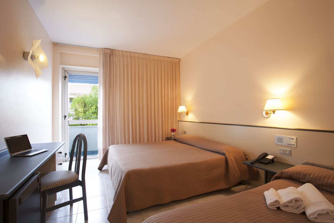 L'albergo dispone di 85 Camere Comfort Monovano, dislocate su tre piani con DOPPIO Ascensore, tutte le camere sono composte da bagno con doccia e asciugacapelli, aria condizionata regolabile autonomamente, frigo-bar, TV , telefono, internet in Wi-Fi , balcone o terrazzino, alcune vista mare. Sistemazioni semplici ma curate per un piacevole soggiorno mare.